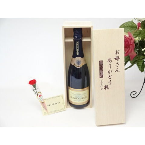 母の日 ギフトセット ワインセット お母さんありがとう木箱セット(モンムソー JMクレマン・ド・ロワールフランス スパークリングワイン750ml『神の雫』に登場したワイン)母の日カード お母さんありがとうカーネイション