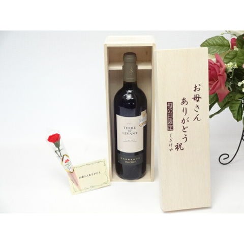 母の日 ギフトセット ワインセット お母さんありがとう木箱セット(金賞受賞フランスワイン 赤ワイン(フランス)750ml)母の日カード お母さんありがとうカーネイション