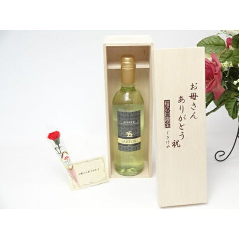 母の日 ギフトセット ワインセット お母さんありがとう木箱セット(サントーリ ソアーヴェ 白ワイン(イタリア)750ml)母の日カード お母さんありがとうカーネイション