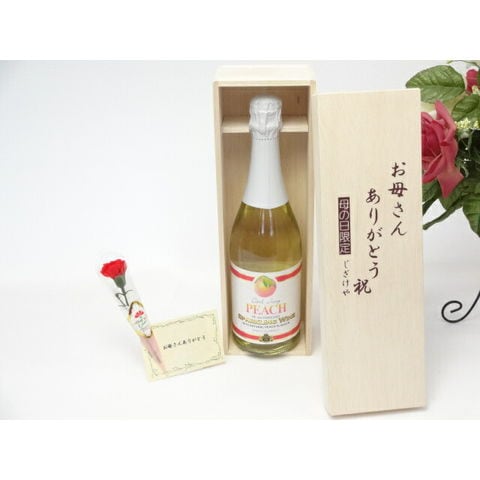 母の日 ギフトセット ワインセット お母さんありがとう木箱セット(脱アルコール ワイン(スパークリング)カールユング スパークリングピーチ(甘口)750ml)母の日カード お母さんありがとうカーネイション
