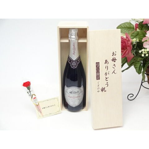 母の日 ギフトセット ワインセット お母さんありがとう木箱セット(ロジャーグラート カヴァ ドゥミ・セック(スペイン)スパークリングワイン)母の日カード お母さんありがとうカーネイション