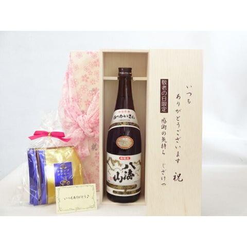 じいじの敬老の日 ギフトセット 日本酒セット いつもありがとうございます感謝の気持ち木箱セット 挽き立て珈琲(ドリップパック5パック)( 八海醸造 八海山 本醸造 720ml(新潟県) ) メッセージカード付
