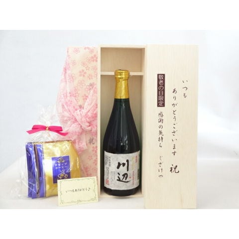 じいじの敬老の日 ギフトセット 焼酎セット いつもありがとうございます感謝の気持ち木箱セット 挽き立て珈琲(ドリップパック5パック)( 繊月酒造 品 純米焼酎 川辺 25度 720ml(熊本県) ) メッセージカード付