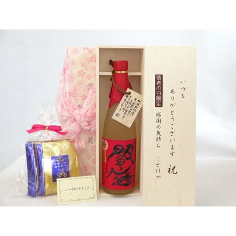 じいじの敬老の日 ギフトセット 焼酎セット いつもありがとうございます感謝の気持ち木箱セット 挽き立て珈琲(ドリップパック5パック)( 老松酒造 麦焼酎 閻魔 25°720ml(大分県) ) メッセージカード付
