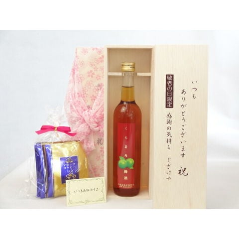 じいじの敬老の日 ギフトセット 梅酒セット いつもありがとうございます感謝の気持ち木箱セット 挽き立て珈琲(ドリップパック5パック)( 濱田酒造 くちまろ 梅酒 500ml[鹿児島県] ) メッセージカード付