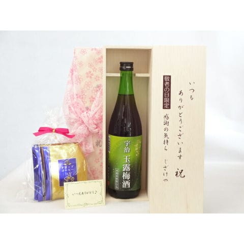 じいじの敬老の日 ギフトセット 梅酒セット いつもありがとうございます感謝の気持ち木箱セット 挽き立て珈琲(ドリップパック5パック)( 北川本家 はんなり梅酒 宇治玉露梅酒 720ml(京都府) ) メッセージカード付