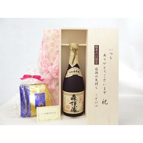 じいじの敬老の日 ギフトセット 焼酎セット いつもありがとうございます感謝の気持ち木箱セット 挽き立て珈琲(ドリップパック5パック)( 森伊蔵酒造「森伊蔵」芋25度720ml(鹿児島県) ) メッセージカード付