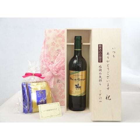じいじの敬老の日 ギフトセット ワインセット いつもありがとうございます感謝の気持ち木箱セット 挽き立て珈琲(ドリップパック5パック)( デュック・ド・グリュグ・ブラン 白(フランス) 750ml) メッセージカード付