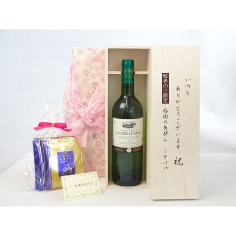 じいじの敬老の日 ギフトセット ワインセット いつもありがとうございます感謝の気持ち木箱セット 挽き立て珈琲(ドリップパック5パック)( 金賞受賞ワイン 白(フランス)750ml )メッセージカード付