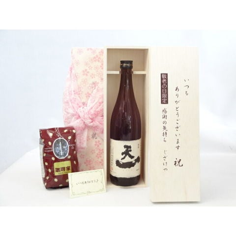 じいじの敬老の日 ギフトセット 日本酒セット いつもありがとうございます感謝の気持ち木箱セット+オススメ珈琲豆(特注ブレンド200g)(早川酒造部 天一 山廃本醸造 720ml(三重県)) メッセージカード付