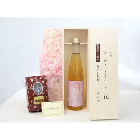 じいじの敬老の日 ギフトセット 梅酒セット いつもありがとうございます感謝の気持ち木箱セット+オススメ珈琲豆(特注ブレンド200g)( 老松酒造 天空の月 樽熟梅酒 500ml (大分県) ) メッセージカード付