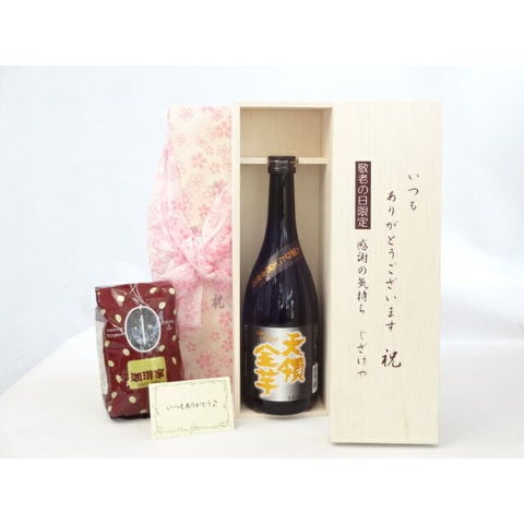 じいじの敬老の日 ギフトセット 焼酎セット いつもありがとうございます感謝の気持ち木箱セット+オススメ珈琲豆(特注ブレンド200g)( 井上酒造 天領金芋 23度 720ml(大分県) ) メッセージカード付