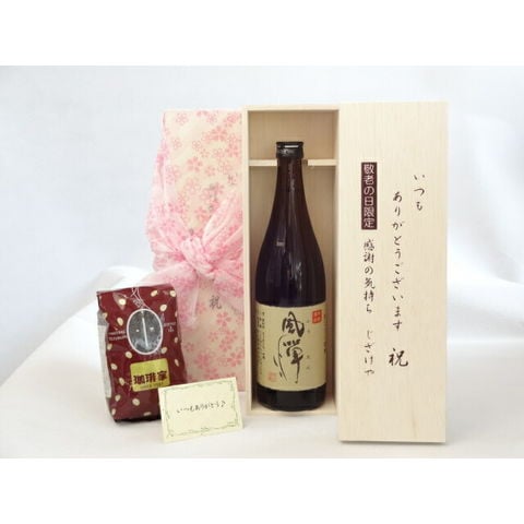 じいじの敬老の日 ギフトセット 焼酎セット いつもありがとうございます感謝の気持ち木箱セット+オススメ珈琲豆(特注ブレンド200g)( 吹上焼酎 本格焼酎 風憚 25度 720ml(鹿児島県)) メッセージカード付