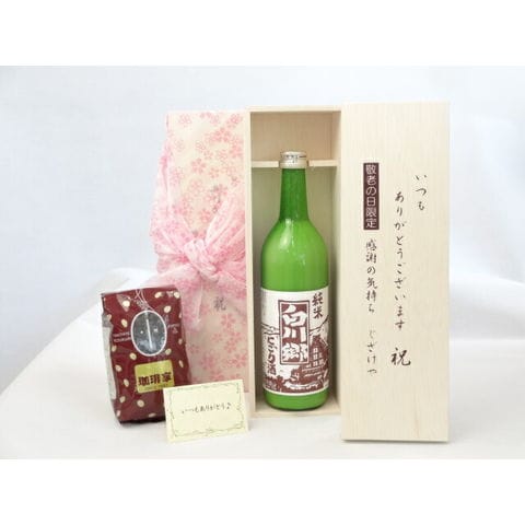 じいじの敬老の日 ギフトセット 日本酒セット いつもありがとうございます感謝の気持ち木箱セット+オススメ珈琲豆(特注ブレンド200g)( 三輪酒造 白川郷 純米 にごり 720ml (岐阜県)) メッセージカード付