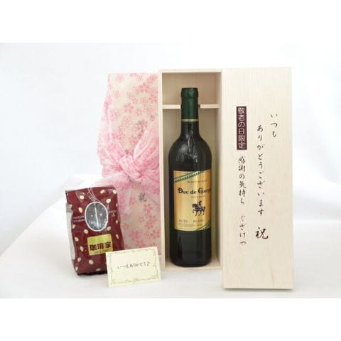 じいじの敬老の日 ギフトセット ワインセット いつもありがとうございます感謝の気持ち木箱セット+オススメ珈琲豆(特注ブレンド200g)( デュック・ド・グリュグ・ブラン 白(フランス) 750ml) メッセージカード付