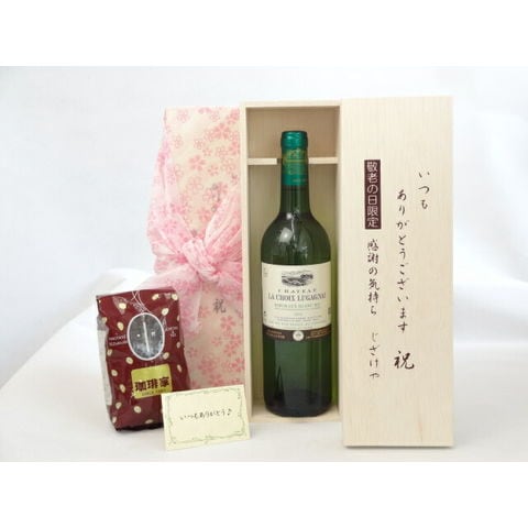 じいじの敬老の日 ギフトセット ワインセット いつもありがとうございます感謝の気持ち木箱セット+オススメ珈琲豆(特注ブレンド200g)( 金賞受賞ワイン 白ワイン(フランス)750ml )メッセージカード付