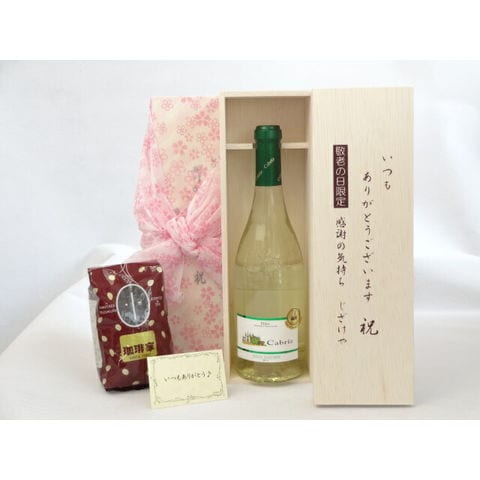 じいじの敬老の日 ギフトセット ワインセット いつもありがとうございます感謝の気持ち木箱セット+オススメ珈琲豆(特注ブレンド200g)( 金賞受賞ワイン白ワイン)メッセージカード付