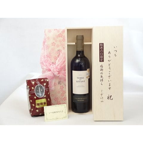 じいじの敬老の日 ギフトセット ワインセット いつもありがとうございます感謝の気持ち木箱セット+オススメ珈琲豆(特注ブレンド200g)( 金賞赤ワイン(フランス)750ml )メッセージカード付