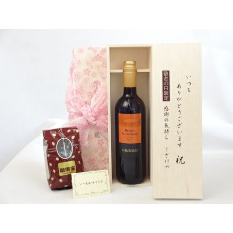じいじの敬老の日 ギフトセット ワインセット いつもありがとうございます感謝の気持ち木箱セット+オススメ珈琲豆(特注ブレンド200g)( ヴェロネッロ ロッソ 赤ワイン750ml)メッセージカード付