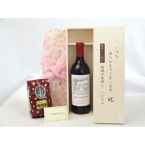 じいじの敬老の日 ギフトセット ワインセット いつもありがとうございます感謝の気持ち木箱セット+オススメ珈琲豆(特注ブレンド200g)( シュヴァリエ・デュ・ルヴァン 赤ワイン(フランス)750ml)メッセージカード付