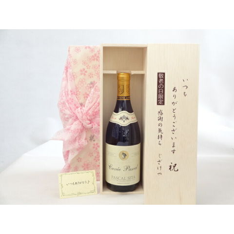 じいじの敬老の日 ワインセット いつもありがとうございます感謝の気持ち木箱セット( パスカル シータ キュヴェルージュ 赤ワイン(フランス)750ml)メッセージカード付