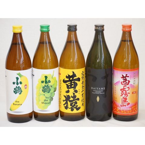 フルーティな香り系芋焼酎5本セット(小鶴 ザ・マスカット 小鶴 ザ・バナナ ライチ系のだいやめ マスカット系黄猿 茜霧島) 900ml×5本