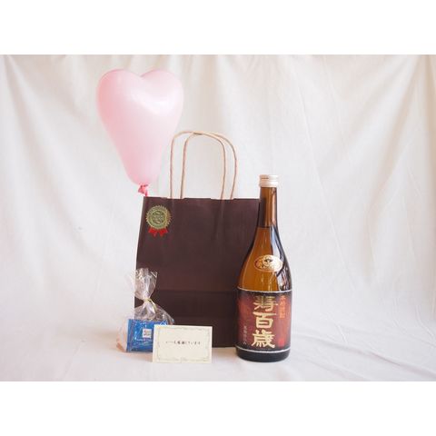 贈り物セット 焼酎セット(本格焼酎 寿百歳 黒麹720ml(鹿児島県))メッセージカード ハート風船 ミニチョコ付き