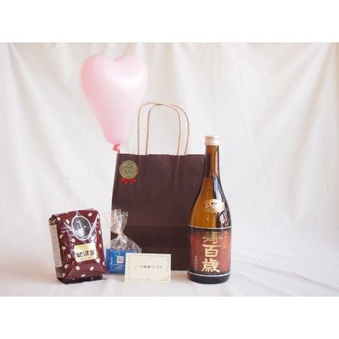 贈り物セット 焼酎セット(本格焼酎 寿百歳 黒麹720ml(鹿児島県))ハッピーブレンド200g メッセージカード ハート風船 ミニチョコ付き