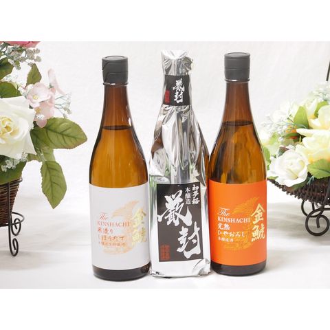 愛知県金鯱厳選素材日本酒3本セット(金鯱初夢桜 厳封本醸造 金鯱寒造りしぼりたて本醸造生貯蔵 金鯱完熟ひやおろし) 720ml×3本
