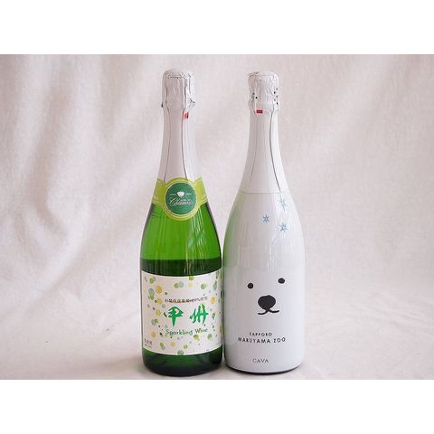 山梨県産ワインと2本セット スパークリング白ワイン勝沼仕込みの甲州スパークリングワイン(やや辛口)11.5°(山梨県)720mlスパークリング白ワインしろくまスパークリング11.5°(東京都)750ml