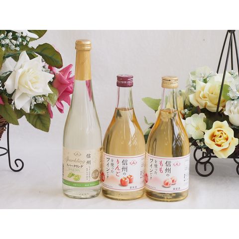 国産果物ワイン3本セット(シャインマスカット&ナイアガラ 信州のりんご 信州のもも) 500ml×3本