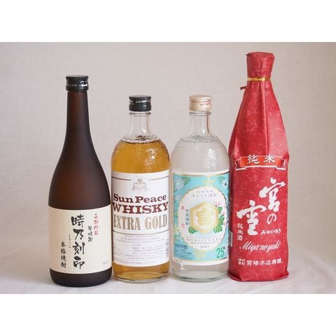 宮崎本店日本酒×焼酎×ウイスキー4本セット(サンピース エクストラ ゴールド 37度 キンミヤ焼酎 25度 宮の雪 純米 長期貯蔵米焼酎 時乃刻印 25度) 720ml×4本