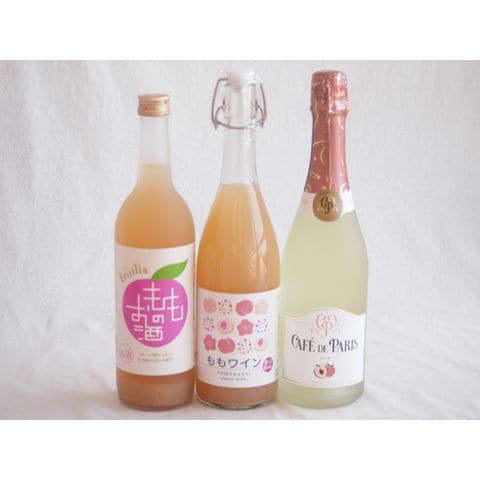 桃のお酒を楽しめる3本セット(山梨県ももワイン 国産もものお酒 カフェ ド パリ ピーチスパークリング(フランス)) 720ml×2本 750ml×1本