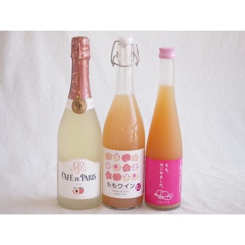 桃のお酒を楽しめる3本セット(山梨県ももワイン もも梅酒ももはじめました カフェ ド パリ ピーチスパークリング(フランス)) 720ml×1本 500ml×1本 750ml×1本