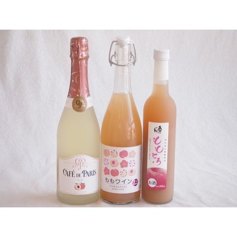 桃のお酒を楽しめる3本セット(山梨県ももワイン 国産ももとろ カフェ ド パリ ピーチスパークリング(フランス)) 720ml×1本 500ml×1本 750ml×1本