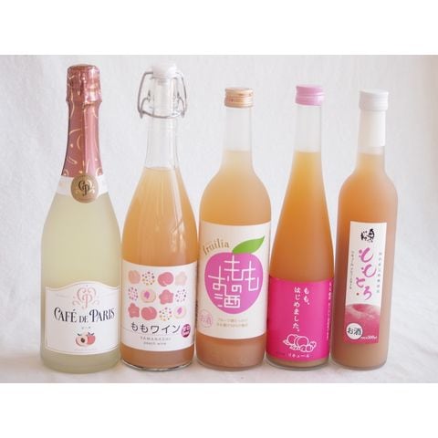 桃のお酒を楽しめる5本セット(山梨県ももワイン もも梅酒ももはじめました 国産ももとろ 国産もものお酒 カフェ ド パリ ピーチスパークリング(フランス)) 720ml×2本 500ml×2本 750ml×1本