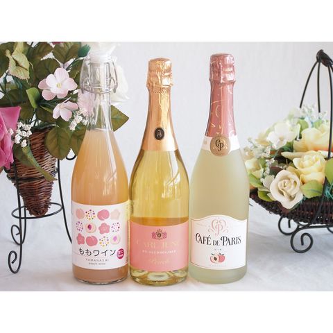 3本セット(山梨県ももワイン カフェ ド パリ ピーチスパークリング(フランス) 脱アルコールカールユングピーチ(ドイツ)) 720ml×1本 750ml×2本
