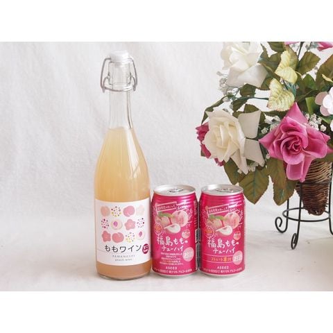 3本セット(山梨県ももワイン 福島もものチューハイ缶) 720ml×1本 350ml×2本