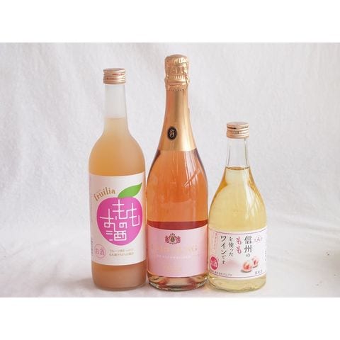 桃のお酒を楽しめる3本セット(国産もものお酒 信州のももを使ったワイン 脱アルコールカールユングピーチ(ドイツ)) 720ml×1本 500ml×1本 750ml×1本