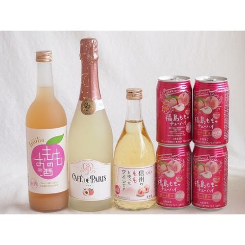 7本セット(国産もものお酒 信州のももを使ったワイン カフェ ド パリ ピーチスパークリング(フランス) 福島もものチューハイ缶) 720ml×1本 500ml×1本 750ml×1本 350ml×4本