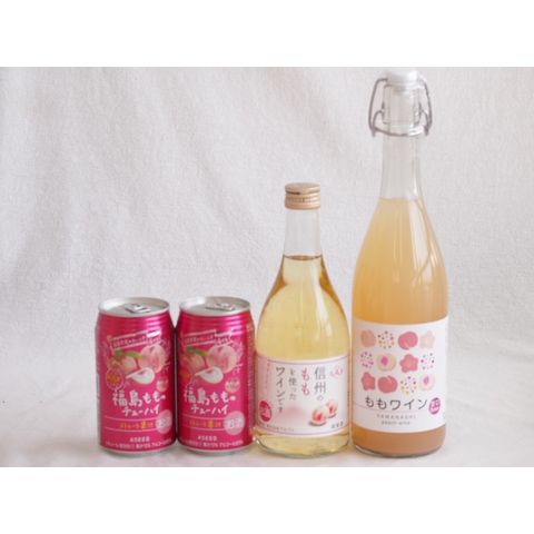 国産桃のお酒を楽しめる4本セット(山梨県ももワイン 信州のももを使ったワイン 福島もものチューハイ缶) 720ml×1本 500ml×1本 350ml×2本