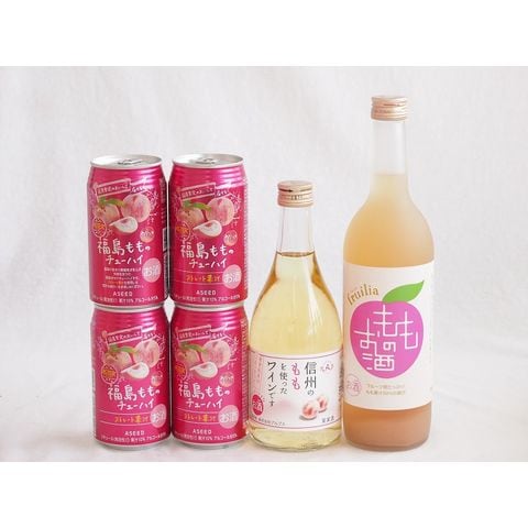 国産桃のお酒を楽しめる6本セット(国産もものお酒 信州のももを使ったワイン 福島もものチューハイ缶) 720ml×1本 500ml×1本 350ml×4本