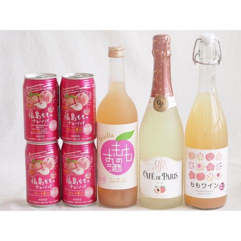 7本セット(山梨県ももワイン 国産もものお酒 カフェ ド パリ ピーチスパークリング(フランス) 福島もものチューハイ缶) 720ml×2本 750ml×1本 350ml×4本