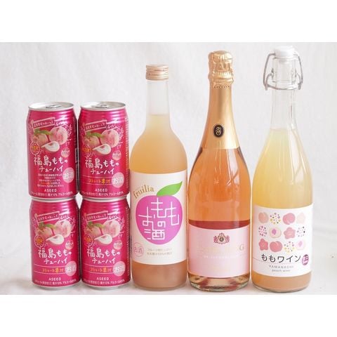 7本セット(山梨県ももワイン 国産もものお酒 脱アルコールカールユングピーチ(ドイツ) 福島もものチューハイ缶) 720ml×2本 750ml×1本 350ml×4本