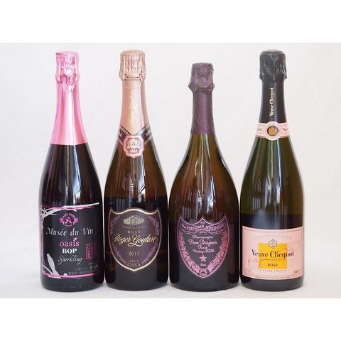 果実味豊かなロゼスパークリングワイン4本セット(ミュゼドゥヴァン ブラッククイーンピンク辛口 ロジャー グラート カヴァ ロゼ(スペイン) ドン ペリニヨン ロゼ ヴーヴ クリコ ロゼ ローズラベル) 750ml×4本