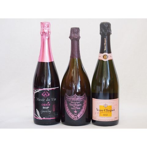 果実味豊かなロゼスパークリングワイン3本セット(ミュゼドゥヴァン ブラッククイーンピンク辛口 ドン ペリニヨン ロゼ ヴーヴ クリコ ロゼ ローズラベル) 750ml×3本