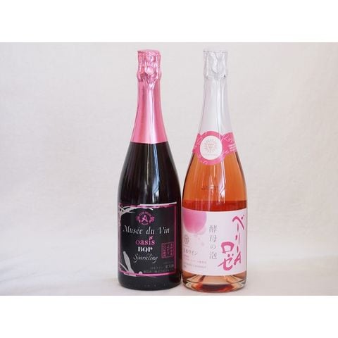 果実味豊かなロゼスパークリングワイン2本セット(ミュゼドゥヴァン ブラッククイーンピンク辛口 酵母の泡ベーリーAロゼ やや辛口) 750ml×1本 720ml×1本