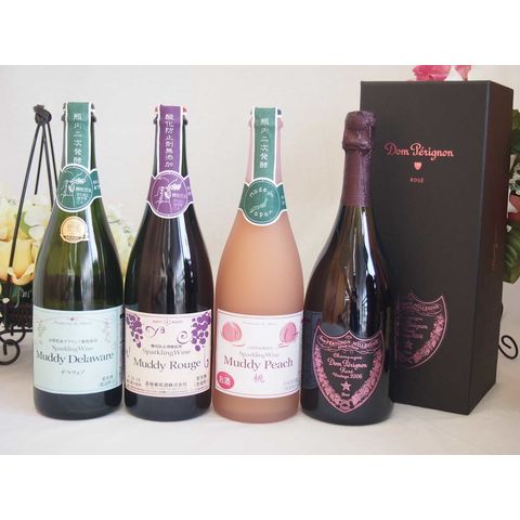正規ピンクのドンペリとマディ ルージュ 山梨県産マディデラウェア葡萄使用スパークリングワイン 山梨県産マディデラウェア桃使用スパークリングワイン(やや甘口)750ml 4本セット
