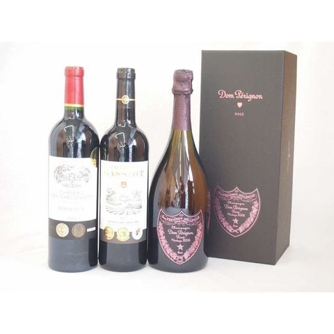 ドンペリニヨンロゼのドンペリとダブル金賞受賞 赤ワイン フランス ボルドー産 ソムリエ厳選2本 計3本