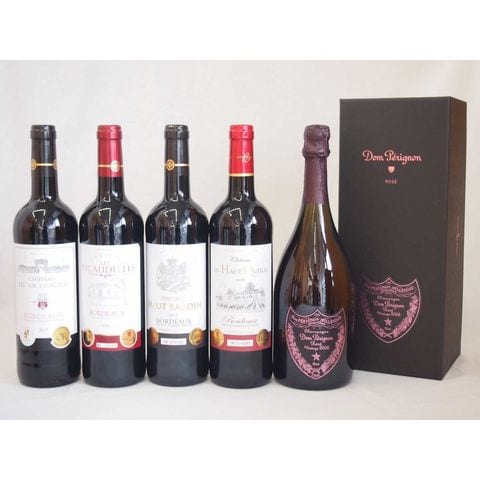 ドンペリニヨンロゼのドンペリとダブル金賞受賞 赤ワイン フランス ボルドー産 ソムリエ厳選4本 計5本